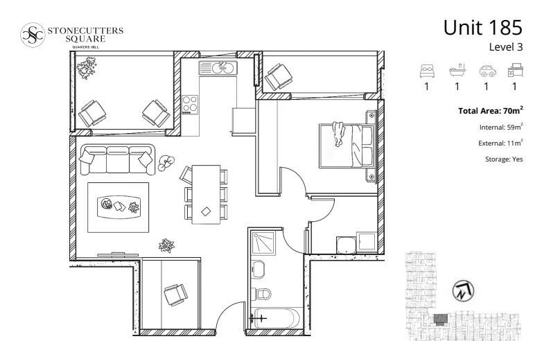 A place for you to live, work and play in the midst of Sydney's thriving new neighbourhood, you'll experience a lifestyle of comfort and convenience. This one-bedroom apartment features includes a study and has two separate balconies.