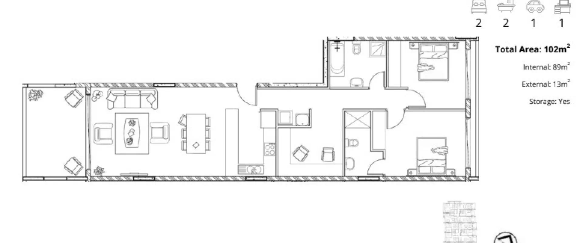 Modern 2 Bedroom Apartment With Study